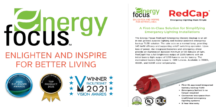 The Energy Focus RedCap® integrates its emergency features into the existing Type B TLED thereby reducing costs and improving market acceptance.
