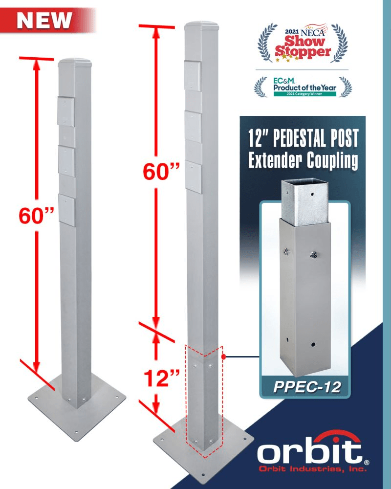 Take your project to new heights! Orbit Industries New Extension Coupling adds 12” of height to their award-winning Rooftop Pedestal Posts.