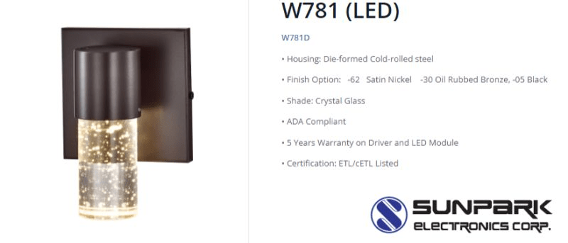 Does your project need a little pop? Do you need help bubbling up some ideas? Take a look at Sunpark Electronics Corporation W781 (LED) Wall Sconce.