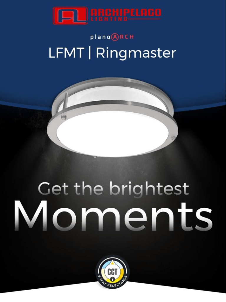 Be the Ringmaster with Archipelago Lighting, Inc. Plano Arch LFMT Ringmaster. The planoⒶRCH LFMT Ringmaster flush mount downlight luminaire is engineered to replace traditional ceiling-mounted downlight with a variety of features for optimized performance and versatility.