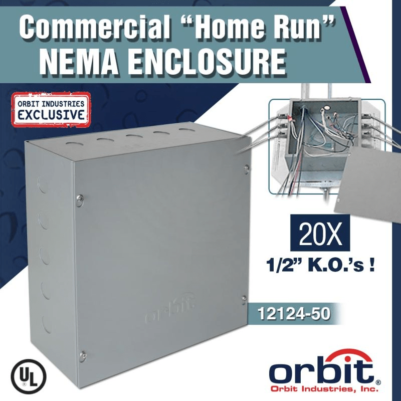 Hit a HOME RUN with Orbit Industries Commercial Home Run NEMA Enclosure Sports Twenty 1/2″ side K.O.’s (5 per) – with a 1″ to 1-1/4″ C.K.O on the bottom. Spec it out on your next corporate, parking, stadium, or airport project!