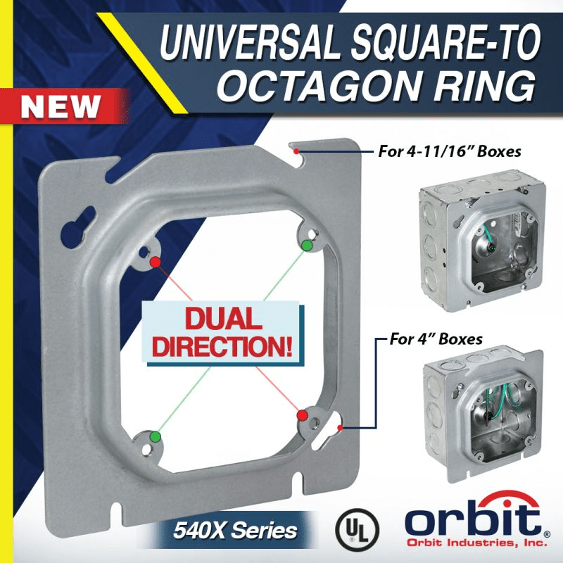 Take a look at Orbit Industries new Universal Square-to-Octagon Rings! A key feature are its four DUAL-DIRECTION device ears. Devices can be installed in any orientation.