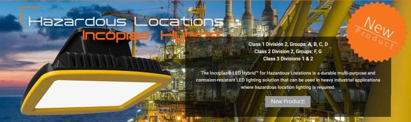 Introducing the Incoplas® LED Hybrid™ from Shat·R·Shield Lighting Inc. Designed for hazardous locations, the Incoplas® LED Hybrid™ is a durable multi-purpose and corrosion-resistant LED lighting solution that can be used in heavy industrial applications where hazardous location lighting is required.