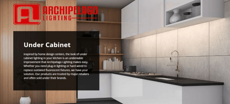 Do not UNDER-estimate cabinet lighting. Take your design to the next level with Archipelago Lighting, Inc.‘s options for Under Cabinet lighting.