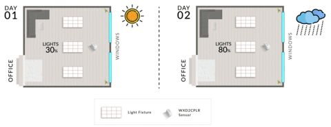 Lumos Controls shares how Daylight Harvesting can increase energy savings and enhance health/occupant well-being. Take a look at the example below.