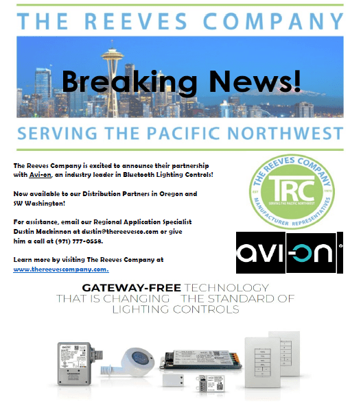 The Reeves Company is excited to announce their partnership with Avi-on Labs, Inc. , an industry leader in Bluetooth Lighting Controls.