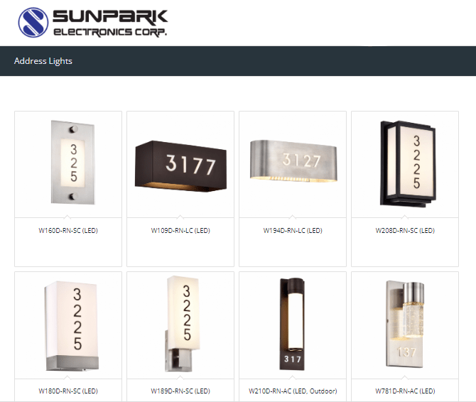 Sunpark Electronics Corporation has a wide selection of Address Lights, guaranteed to add exterior lighting pizzazz! Check out the complete line here: