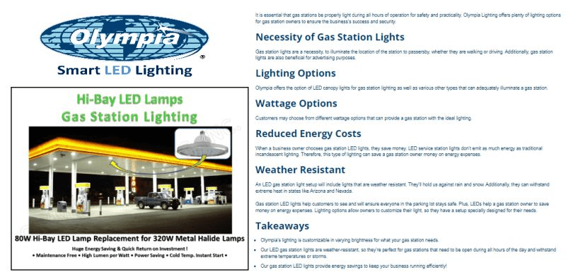 It is essential that gas stations be properly lit during all hours of operation for safety and practicality! Olympia Lighting can help with that. ⛽💡