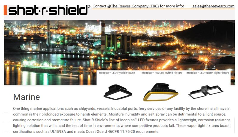 Find out how Shat·R·Shield Lighting Inc. can benefit your marine applications by contacting The Reeves Company PNW.