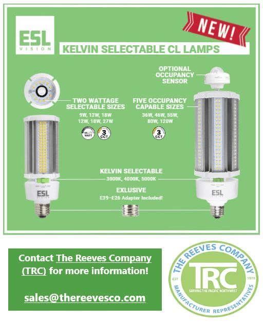 Kelvin Selectable CL Lamps have joined the ESL Vision family. Available with: