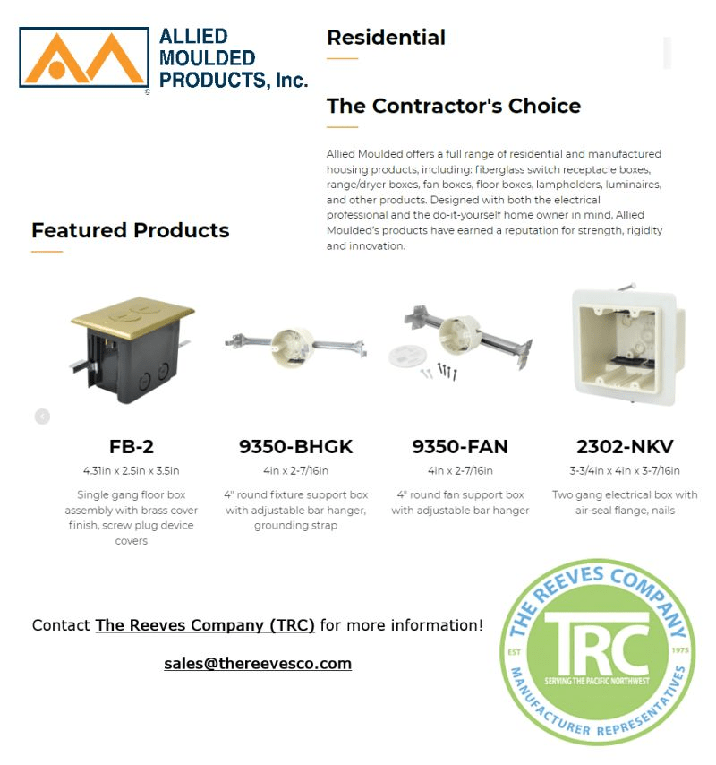 Find out how Allied Moulded Products, Inc can benefit your next project by contacting The Reeves Company PNW!