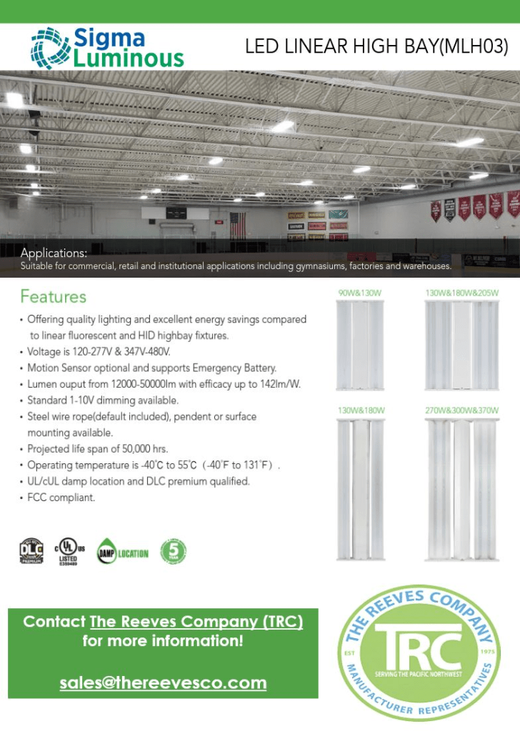 Sigma Luminous LED Linear High Bays offer quality lighting and excellent energy savings. Motion Sensor is optional. A great fit for: