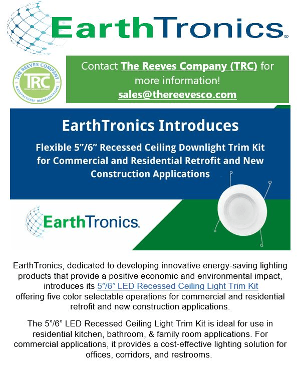 INTRODUCING EarthTronics, Inc. – Energy Efficient Lighting Products 5″/6″ Recessed Ceiling Downlight Trim Kit! Available in five color selectable operations for Commercial and Residential Retrofit and New Construction Applications! A great option for: