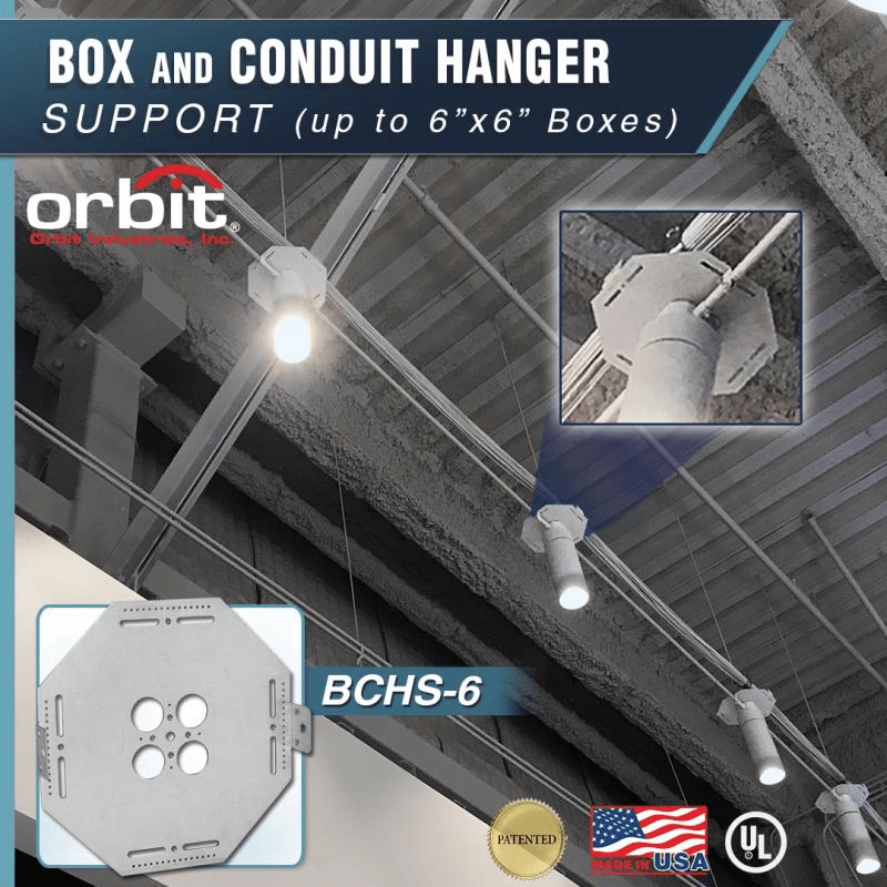 Hang out with Orbit Industries Box and Conduit Hanger! Their patented Box and Conduit Hanger Support can be mounted horizontally or vertically. Made in the USA! ♥🤍💙
