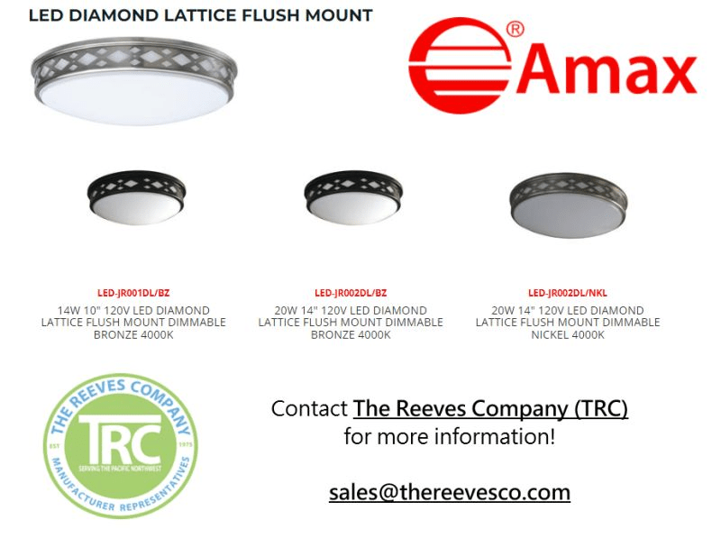 Gain access to AMAX LIGHTING, INC.‘s catalog of decorative fixtures by contacting The Reeves Company PNW!