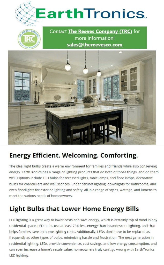 Learn more about EarthTronics, Inc. – Energy Efficient Lighting Products and their variety of Lighting Solutions by contacting The Reeves Company PNW!
