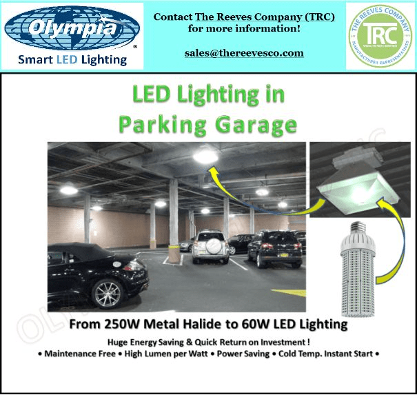Olympia Lighting LED Lighting can increase safety and visibility when loved ones are parked in Parking Garages for a trip to a: