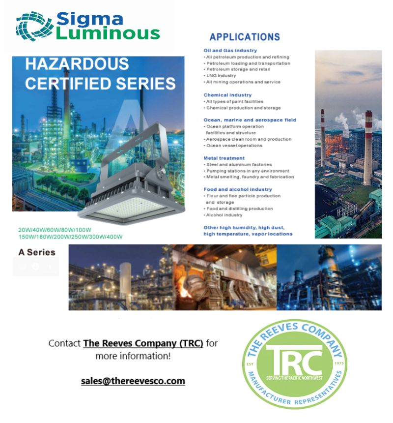 Tackle Hazardous Industrial Projects with Sigma Luminous! Their Hazardous Certified A Series is rugged enough to withstand high humidity, high dust, high temperature, vapor Applications such as: