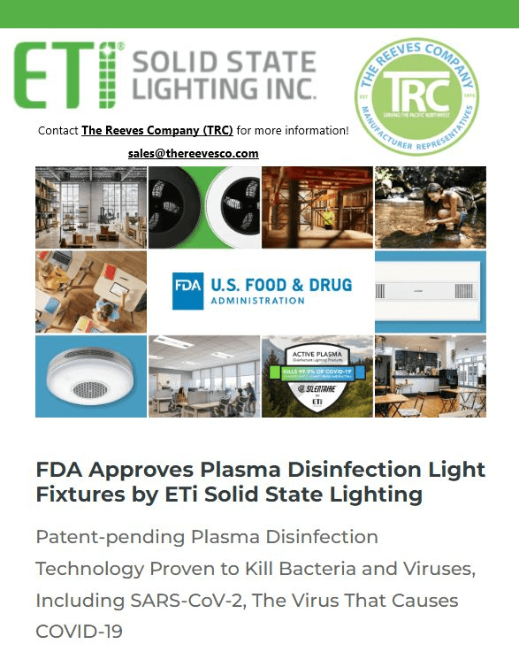 Did you know that ETi Solid State Lighting, Inc.‘s Plasma Disinfection Light Fixtures are FDA approved?