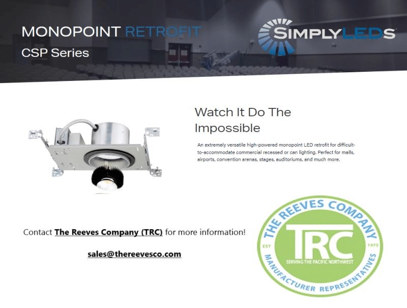 SimplyLEDs Monopoint Retrofit CSP Series CAN do the impossible! SimplyLEDs has created a versatile, high-powered Monopoint LED Retrofit for challenging Commercial recessed or CAN lighting. A fantastic option for: