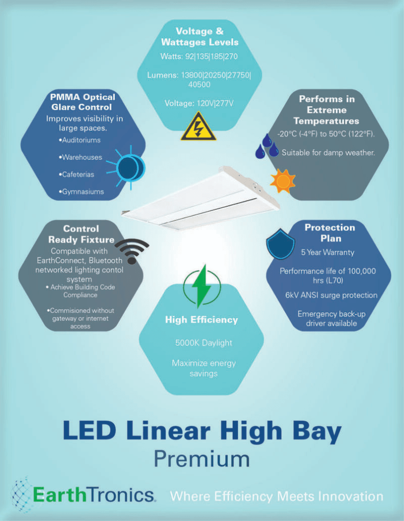 Introducing EarthTronics, Inc. – Energy Efficient Lighting Products NEW LED Linear High Bay Premium Series! Made: