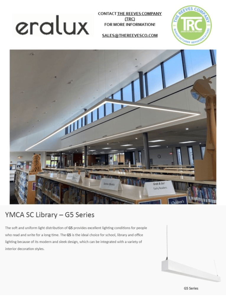 Look at how ERALUX‘s G5 Series snazzed up this YMCA Library! The soft and uniform light provides excellent lighting conditions for people who read and write for a long time. Reduce eye fatigue with this modern and sleek design. Imagine ERALUX‘s G5 Series in: