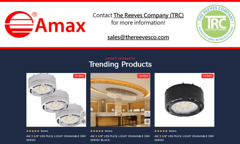 Learn more about AMAX LIGHTING, INC. and their newest items by contacting The Reeves Company PNW!!!