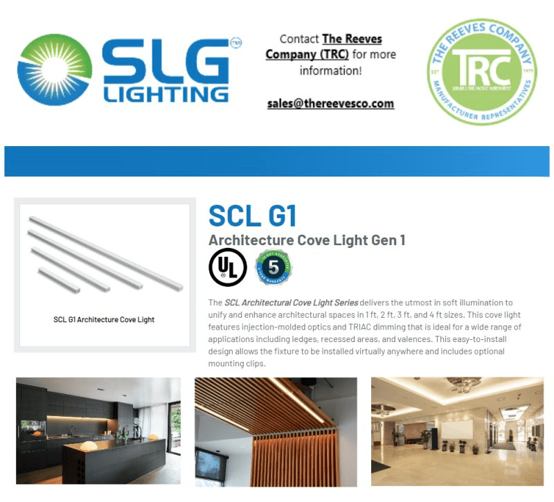 Find out how SLG Lightingยฎ can enhance your next project by contacting The Reeves Company PNW!