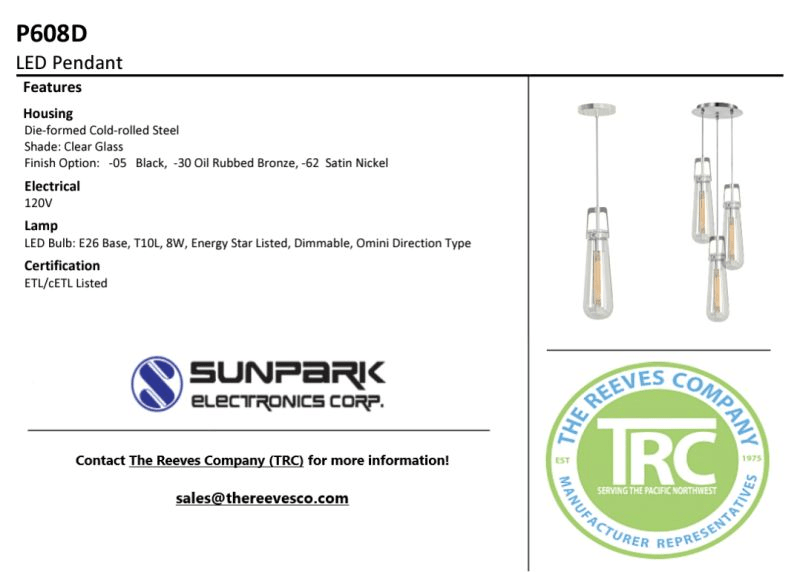 Sunpark Electronics Corporation LED pendants are the perfect combination of form and function, blending modern design with eco-friendly lighting. With their sleek lines and captivating illumination, Sunpark Electronics Corporation‘s P608 LED Pendants add a touch of sophistication to any space. Provide a warm, inviting glow to: