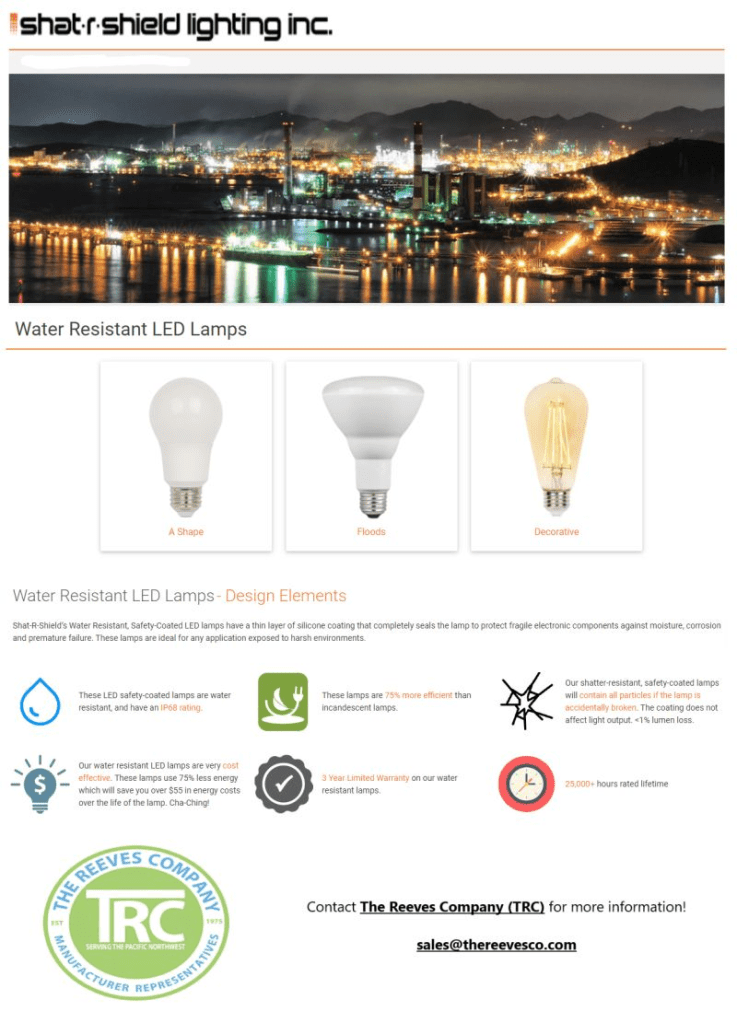 Find out how Shat·R·Shield Lighting Inc. can benefit your next project by contacting The Reeves Company PNW!