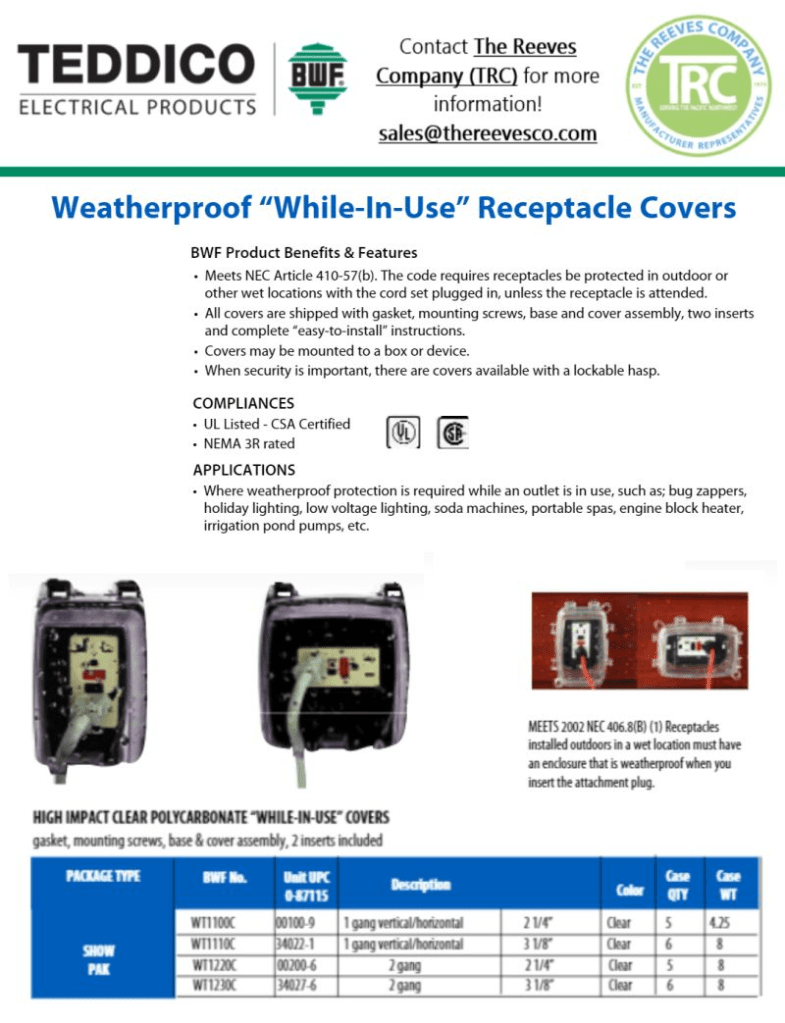 Discover more about Teddico‘s Electrical Products by contacting The Reeves Company PNW!