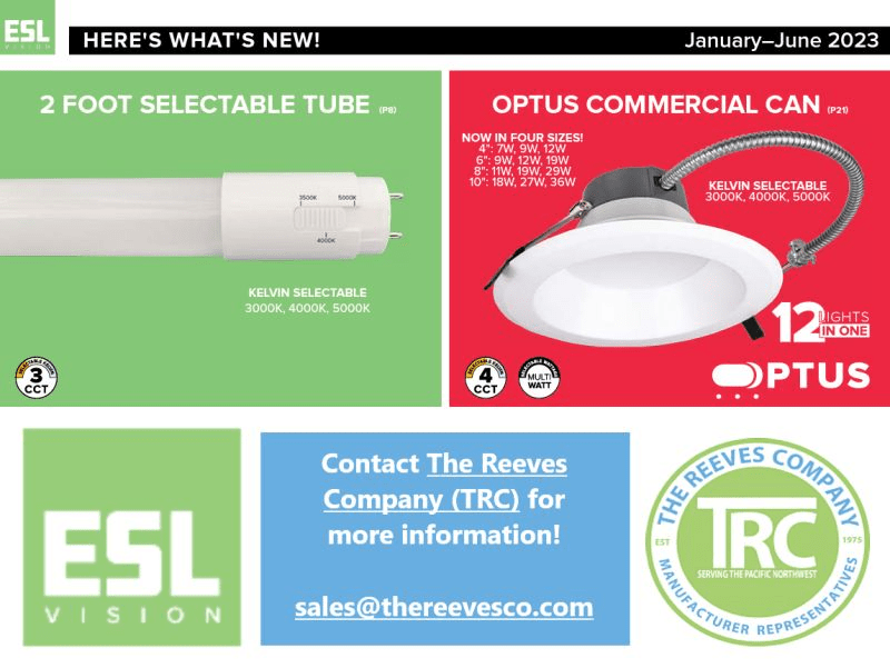Check out the rest of ESL Vision‘s extensive lighting catalog by contacting The Reeves Company PNW!