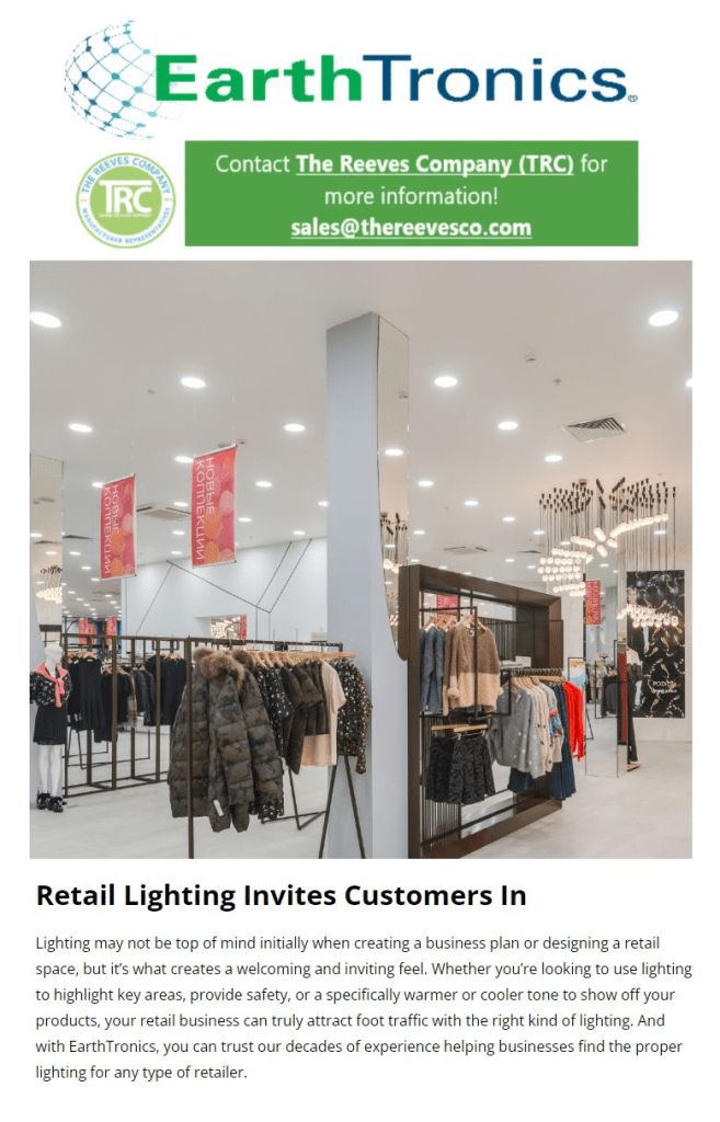 EarthTronics, Inc. – Energy Efficient Lighting Products understands the importance of proper lighting in Retail Applications. π¬ππͺ