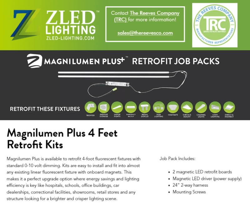 Make old, new again with ZLEDLighting‘s Magnilumen Plus+ 4 Foot Retrofit Kits. Built to retrofit 4 Foot fluorescent fixtures with standard 0-10 volt dimming. With its easy install capabilities, this kit is a perfect upgrade option for: