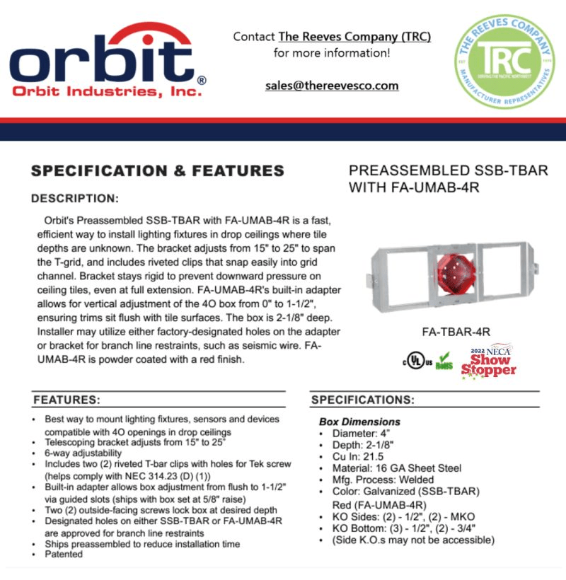 Orbit Industries Preassembled SSB-TBAR with FA-UMAB-4R is stocked and ready to rock! Shipped out preassembled to reduce installation time. Who doesn’t want to save time and money. Don’t miss out on this 2022 NECA Show Stopper!