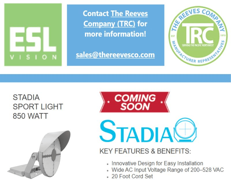 COMING SOON to an ESL Vision near you….through The Reeves Company!!! Get your hands on ESL Vision‘s STADIA Sport Light! Increase visibility for players, performers, and the crowds. Create a vivid and energetic environment at: