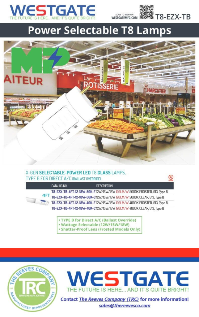 Make the lighting at Grocery Stores fit to a T….Westgate Mfg‘s Power Selectable T8 Lamps that is.