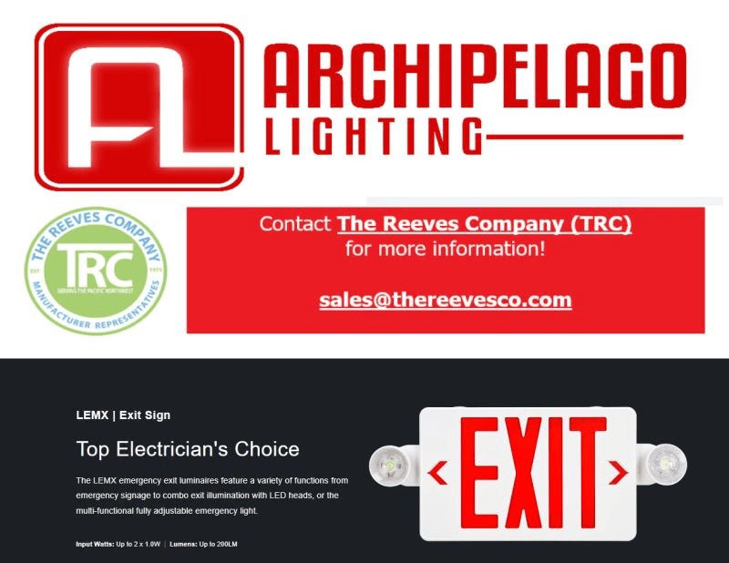 Archipelago Lighting, Inc.‘s LEMX Exit Sign is a Top Electrician’s Choice luminaire. Made with a variety of functions from emergency signage to combo exit illumination with LED heads to multi-functional fully adjustable emergency light, it’s easy to see why. π΄βπ΄