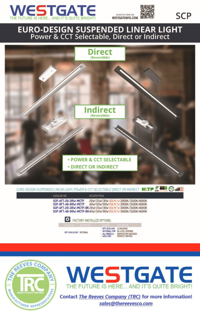 It’s usually best to be DIRECT. But in this case, it’s ok to be INDIRECT as well. Westgate Mfg‘s Euro-Design Suspended Linear Lights are power and CCT selectable, DIRECT or INDIRECT. I would say that is pretty straight-forward.