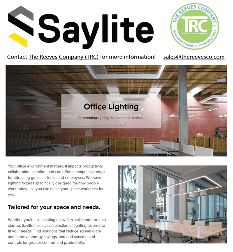 Learn more about Saylite‘s customizable lighting options by contacting The Reeves Company PNW!