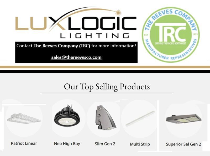Learn more about Luxlogic Lighting Inc. and their top Lighting Solutions by contacting The Reeves Company PNW!
