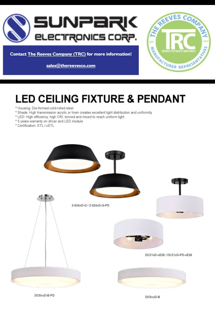 Don’t ever underestimate the value of adding decorative Ceiling Fixtures and Pendants to your Residential and Commercial projects. Sunpark Electronics Corporation has a variety of fixtures guaranteed to add style to any project!