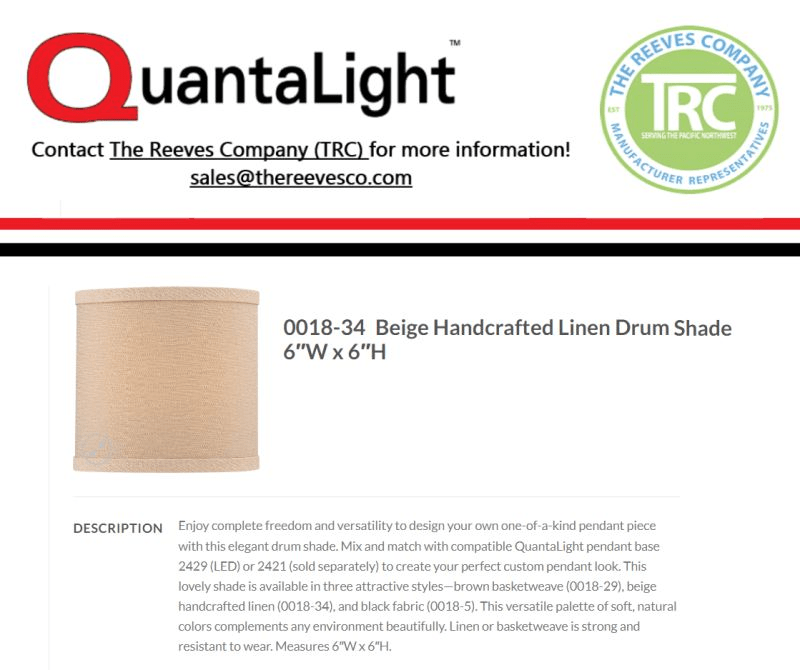 QuantaLight‘s Beige Handcrafted Linen Drum Shade is versatile and elegant. Mix and match with compatible QuantaLight pendant bases to create your own perfect custom pendant look. Create soft illumination in a variety of Applications such as: