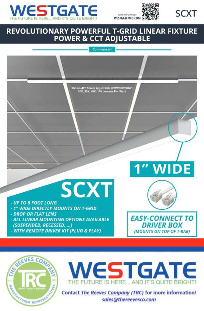 Westgate Mfg‘s SCXT T-Grid Linear Fixture is just one of their many revolutionary lighting solutions. Available in sizes up to 8 feet long. All linear mounting options available, with a remote driver kit!