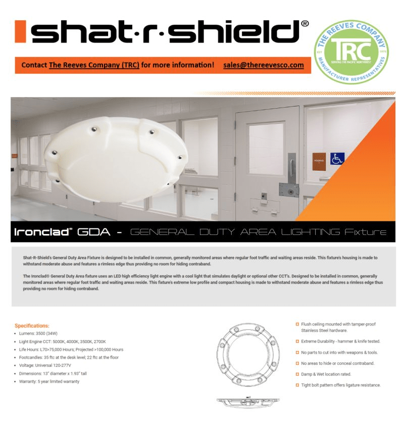 Learn more about Shat·R·Shield Lighting Inc.‘s line of impact resistant lighting fixtures by contacting The Reeves Company PNW!