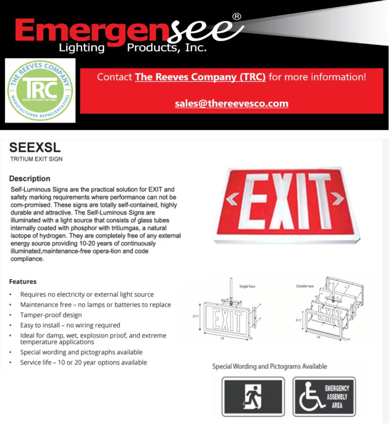 Create a peace of mind with Emergensee / PROlite LED Lighting ‘s SEEXSL Tritium Exit Sign! ❌