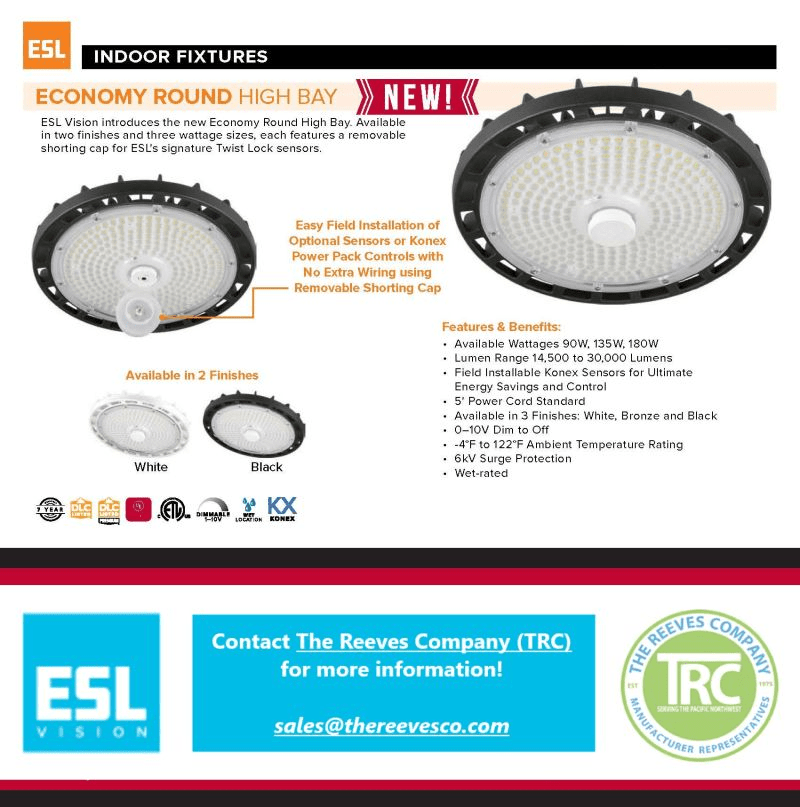 Introducing ESL Vision‘s NEW Economy Round High Bay, one of the NEWEST additions to their Indoor Fixtures Collection.