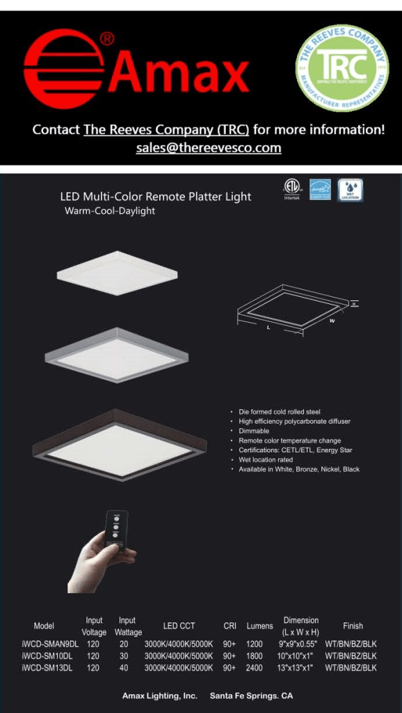 Learn more about AMAX LIGHTING, INC. and their newest items by contacting The Reeves Company PNW!!!