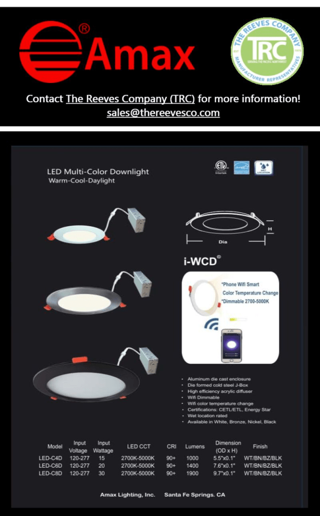 Learn more about AMAX LIGHTING, INC. and their newest items by contacting The Reeves Company PNW!!!
